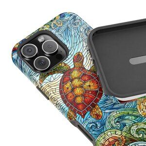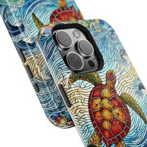 Dive into the beauty of the ocean with this vibrant sea turtle mosaic phone case. Featuring intricate stained glass-inspired waves and a colorful turtle design, this case is perfect for ocean lovers and art enthusiasts.