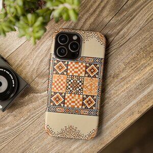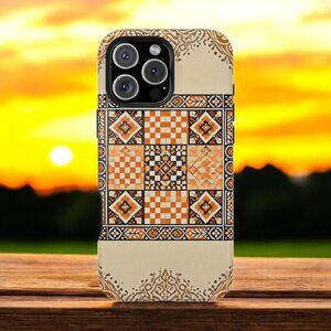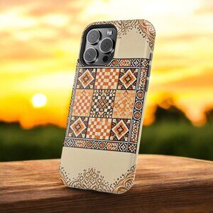 Elevate your style with this vintage-inspired Moroccan tile phone case. Featuring an intricate orange and beige mosaic design, this durable case combines cultural elegance with everyday practicality, perfect for those who love unique and artistic accessories.