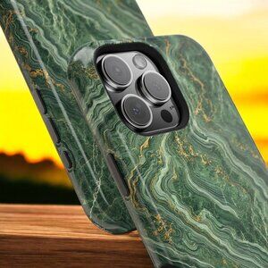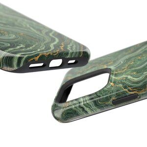 Add sophistication to your device with this luxurious green marble phone case, accented with delicate gold veins. Crafted for durability and elegance, it offers premium protection while enhancing your style. Perfect for iPhone and Android models, this case is a blend of art and functionality.