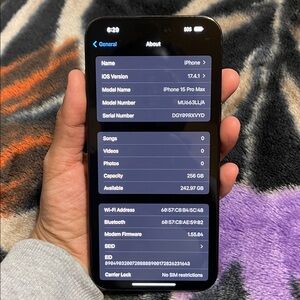 256gb, in good used condition with some minor scratches on phone & on screen. Camera works perfectly; upgraded so need to sell. Phone is UNLOCKED/NO SIM RESTRICTIONS. I had this phone with Verizon wireless. Please see all pics before purchasing. No Box No Charger included!