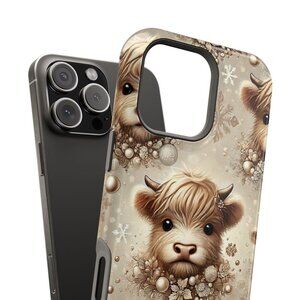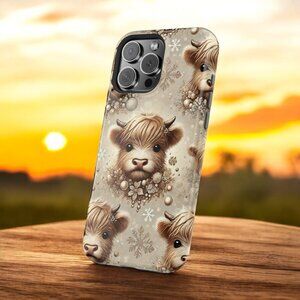 Bring charm and warmth to your phone with this adorable highland cow phone case, featuring a festive winter snowflake design. Perfect for animal lovers and those looking for a cozy, seasonal accessory.