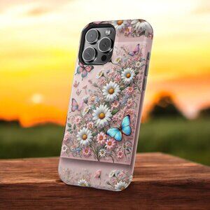 Adorn your phone with this charming butterfly and daisy design. Featuring delicate pastel florals and vibrant butterflies, this phone case is perfect for nature lovers and fans of romantic, artistic accessories.