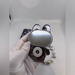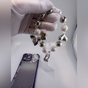 Shine bright and stay stylish with this sparkly silver iPhone 16 Pro Max case featuring a 3D black bear accent, adorable pink-eared bunny, and a detachable pearl & metallic beaded strap for extra flair. This case is the perfect combo of cute and luxe — ideal for mirror selfies, gifting, or everyday glam.