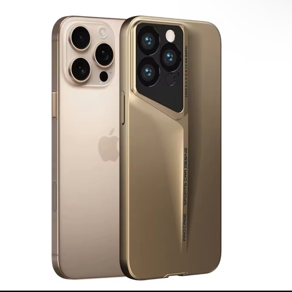 Upgrade your iPhone with this luxurious Gold case inspired by high-end sports car aesthetics. Featuring a unique raised camera guard and clean, aerodynamic lines, this case isn’t just protective — it’s a statement piece.