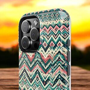 Enhance your phone with this vibrant boho chic phone case featuring an intricate chevron and tribal-inspired design. The colorful and symmetrical patterns exude a blend of ethnic artistry and modern flair, making it the perfect accessory for style enthusiasts. Durable and stylish, this case adds personality to your phone while offering robust protection. Embrace the spirit of boho fashion with every detail!