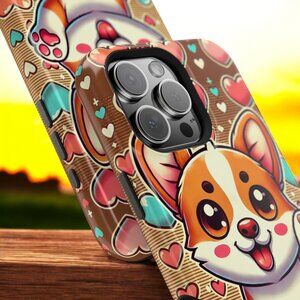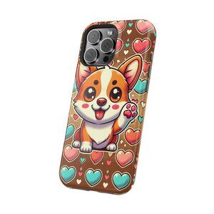 Spread love with this adorable corgi phone case, featuring a cute cartoon design surrounded by colorful hearts. Perfect for dog lovers and fans of kawaii pet accessories, this case provides both charm and reliable protection.