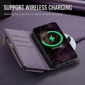 Keep your essentials organized with this elegant purple wallet phone case. Features multiple card slots and a secure zipper for added protection.