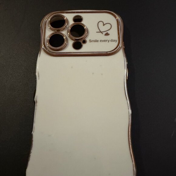 Off-white with gold trim, soft silicone, curvy frame for better grip!