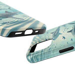 Dive into the beauty of the ocean with this stunning phone case, featuring majestic whale sharks gliding through serene underwater scenes. Perfect for marine life enthusiasts and ocean lovers, this case captures the tranquility and mystery of the deep blue sea. Protect your phone in style while carrying a piece of the ocean with you wherever you go.
