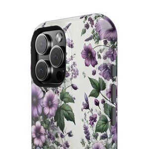 Showcase your love for nature with this delicate purple wildflower phone case. Featuring an intricate floral design with lush greenery, this case is perfect for floral enthusiasts seeking a stylish and protective accessory.