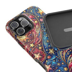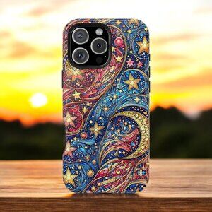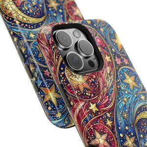 Transform your phone with this mesmerizing celestial phone case featuring vibrant swirls of stars and cosmic patterns in rich hues of blue, red, and gold. Perfect for stargazers and lovers of cosmic art, this case combines protection with an out-of-this-world design.