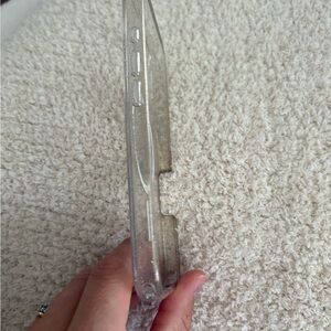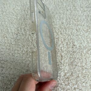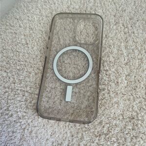 Stylish clear phone case with glitter and MagSafe functionality. Perfect for a sleek look.