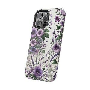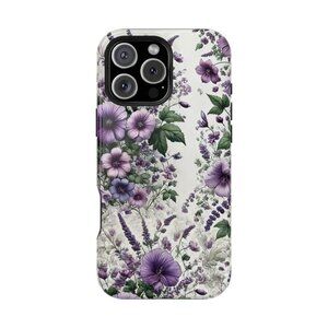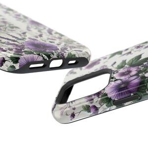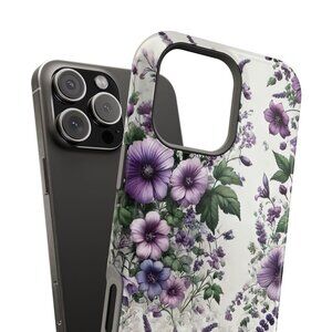 Showcase your love for nature with this delicate purple wildflower phone case. Featuring an intricate floral design with lush greenery, this case is perfect for floral enthusiasts seeking a stylish and protective accessory.