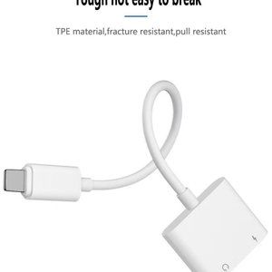 Brand new 2 in 1 Aux Audio 3.5mm and Charging Splitter Adaptor for iPhones and iPads, compatible with all iPhones 7 and newer and IOS 11 later.
