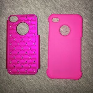 Brand new iPhone 4/4s case with no scratches or scuffs. Shock absorbing core with hard shell wrap around for protection. Brilliant pink with rhinestones to add a special flair to your phone 💗 Make me an offer!
