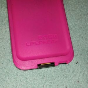 iPhone 5 authentic magenta life proof case with original box. very slight Crack in top as pictured, but doesn't affect the case. other wise, barely used and good condition.