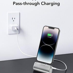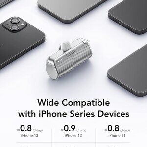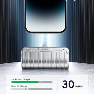 Brand new in original packaging. VRURC Brand. 5000mAh power bank specifically designed for iPhone users. It features PD 20W fast charging, capable of juicing up an iPhone 13 up to 60% in just 30 minutes. Compatible with iPhone 8 and newer models, as well as AirPods, this handy device eliminates the need to carry extra cables, thanks to its built-in iPhone cable. It also includes a foldable metal stand for hands-free viewing. Though compact at 3.07 * 1.44 * 1.07 inches and weighing just 0.23lbs, it can deliver close to a full charge for various iPhone models and multiple charges for AirPods. Perfect for on-the-go emergencies or daily use, it's the ideal accessory for iPhone owners. (Note: Not compatible with Android or Type-C devices). Comes with a USB A to USB C cable and product manual. Reach out if you're interested or have any questions!