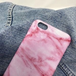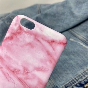 - Pink, White / Marble Print / Plastic, Matte Cover