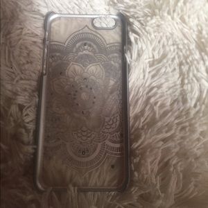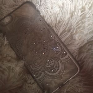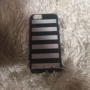iPhone 6 cases . 1st - VS black and white case $7 .2nd- black and white striped case $3 .3rd-sliver with rhinestones $4. 4rd- winter themed , pink and purple $5 All in good shape .