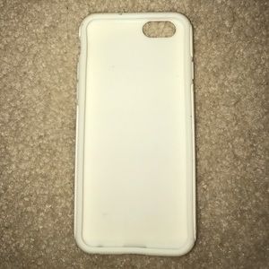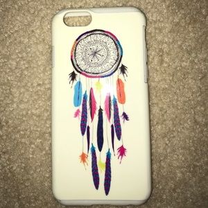 White iPhone 6 phone case with dream catcher decal. The outside is hard cover while the inside is gel.