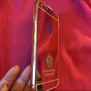iPhone 6/6s rose gold mirrored phone case. Not going to lie, this is not the best quality phone case. The back can snap off pretty easily from the frame, but the mirror is a cool effect. This has not been used at all but this is how I received the case, the mirrored back has some scratches. I can give this free with a $20 purchase upon request :) not selling for less than $6 by itself because it's not even worth the drive to the post office to ship it.