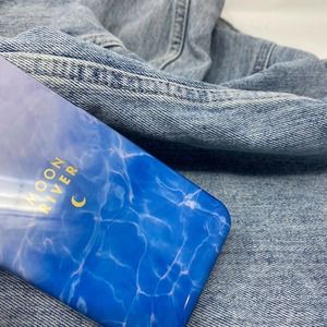 - Blue, White, Gold / Water Print / Plastic, Glossy Cover