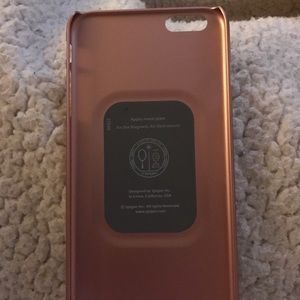 Rose gold Spigen. Has a spot for a magnet for a mount. It has two knicks by the top