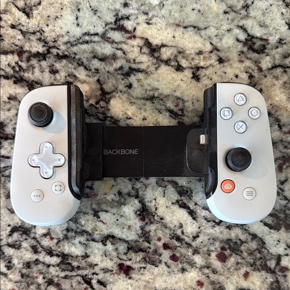 Enhance your gaming experience with this Backbone controller. Features a sleek white and black design. Perfect for mobile gaming.