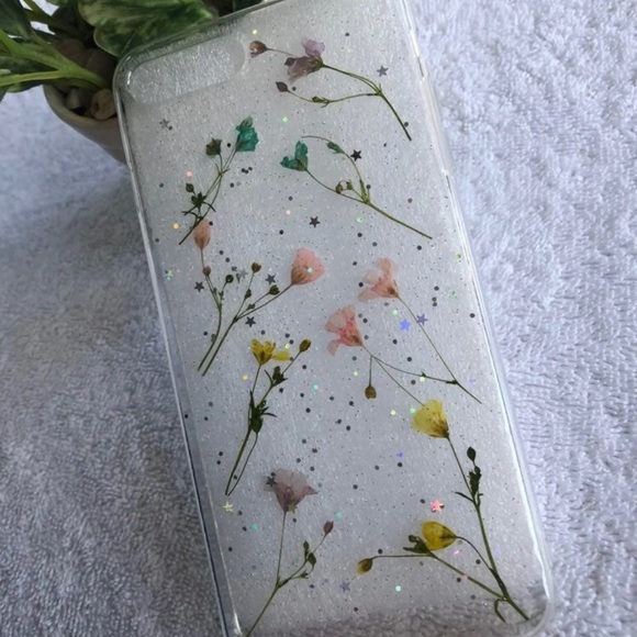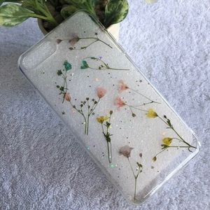 iPhone case back cover transparent silicone with real dried flowers. Available for iPhone X, 8 plus 7 plus, iPhone 7 8, 6 6s