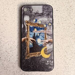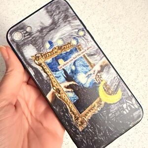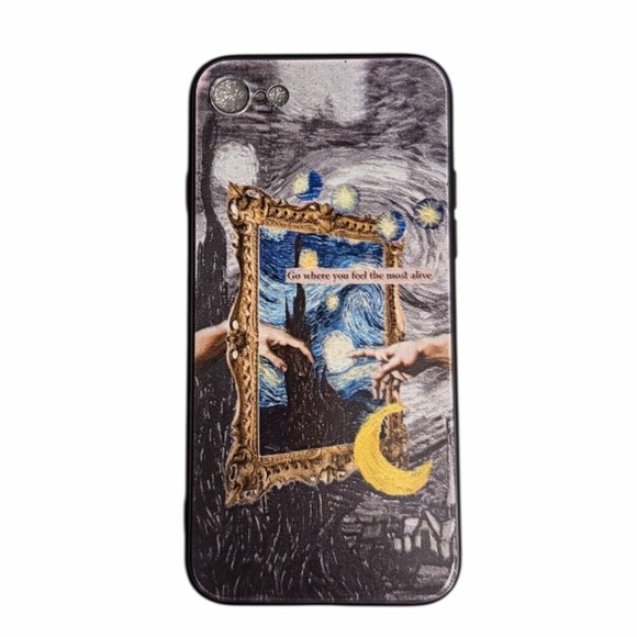 iPhone case featuring a collage design incorporating elements from Vincent van Gogh's famous art painting The Starry Night and Adam.