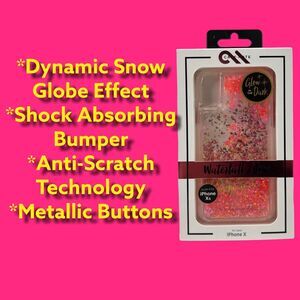 iPhone X , iPhone XS Case Clear Glowing Pink Glitter Waterfall by Case-Mate NEW!