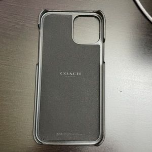 Authentic Black leather coach iPhone 12pro phone case. Was used for about 2 weeks because it’s leather there is signs of use but still in really good condition.