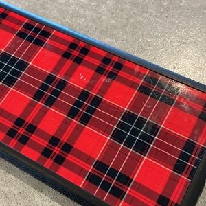 Outside measurements: width 3 1/8”, length 6 3/8”, inside measurements: width 3”, length 6 1/8”, some scuff marks see pics, good condition, Buffalo plaid design,