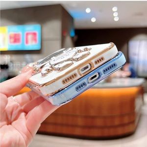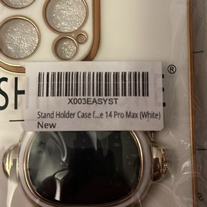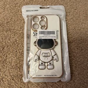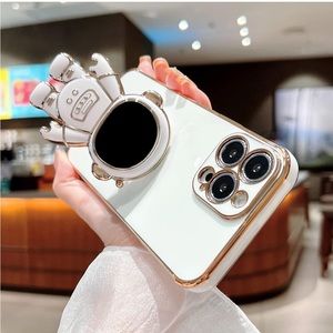 phylla Compatible with iPhone 14 Pro Max Cute Astronaut Plated Stand Holder Phone Case Luxury Electroplated Edge Case with Side Small Heart Pattern for Women Soft Shockproof Kickstand Bumper (White)