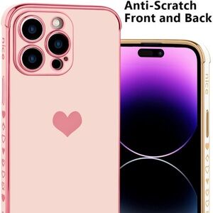 Compatible with iPhone 14 Pro Case for Women Girl, Love Heart Luxury Electroplated Plating Edge with Wrist Strap Soft TPU Shockproof Protection Case Cover for iPhone 14 Pro 6.1 Inch-Pink