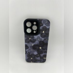 Elevate your phone’s style with this sophisticated black floral case for iPhone 16 Pro Max. The semi-transparent flower pattern, layered in deep charcoal and black tones, is delicately accented with shimmering gold details, giving it a luxurious look.