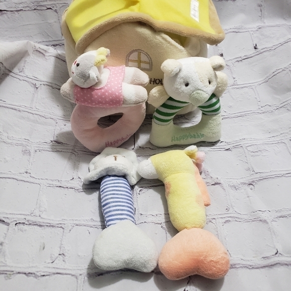 iPlay iLearn Happy Baby House Plush And Rattle Set 6-inch With Handle Tan