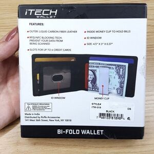 iTECH Mens Bifold Black Wallet Money Clip Card Holder RFID