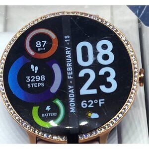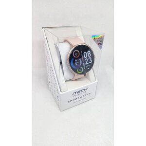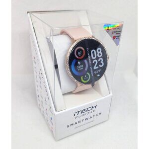 Discover the iTech Fusion 2 Smartwatch with a stylish salmon band, compatible with Android and iOS devices. Features include a heart rate monitor, body temperature monitor, connected GPS, and water resistance. Track your distance, blood oxygen levels, steps, and more. Enjoy multi-sport modes including indoor cycling, outdoor cycling, running, golf, hiking, football, basketball, and tennis. Stay connected and active with hydration reminders, sedentary alerts, music remote, and more. Compatible with Samsung Galaxy S10 and higher, Apple iPhone X and higher, and select LG devices.