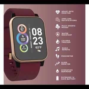 iTech Fusion 2 Unisex Burgundy Smart Watch with Wireless Headphone