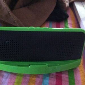 Plug in iPhone , iPod touch and it plays super loud :) have a green one as well ;*never used !!