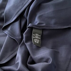 iZ BYER, WOMENS, DAINTY & DELICATE, NAVY BLUE DRESS. SCOOP NECKLINE, SHEER PUFF SLEEVES. PLEATED TOP AND GATHERED ELASTIC WAIST. SHEER FABRIC OVER LINED SKIRT. SIZE L.