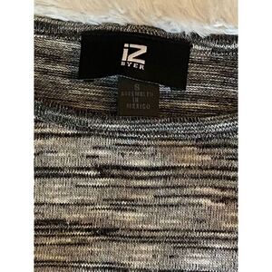 This is a woman’s Jr stylish SZ S iZ BYER black, gray and white stylish 3/4 sleeve top/blouse. It is laced at the shoulders and gathers on the side. Material and measurements are in the pictures.