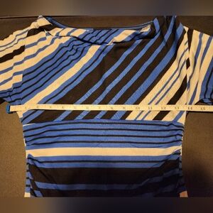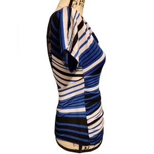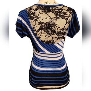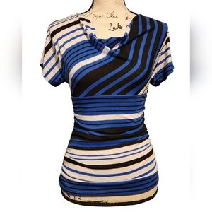 Super cute drape neck blouse with a lace back and slight ruching on the sides Worn maybe twice T-53