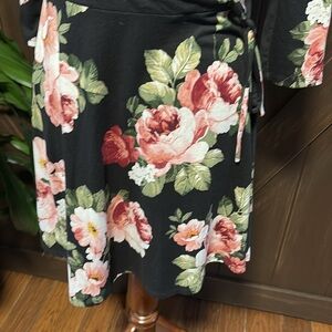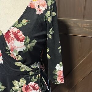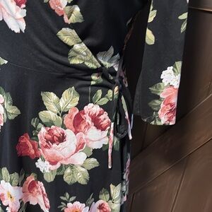 iZ Byer Large black v neck fitted dress with Pink rose pattern.