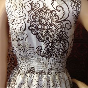 Unique blouse by iZ Buyer, flower printed ruffled sleeveless blouse with flattering gathered waist & buttons up the front, size small. Length is 22" & waist is up to 26" Material is polyester.