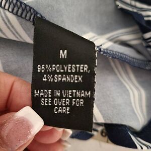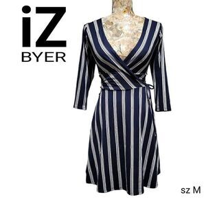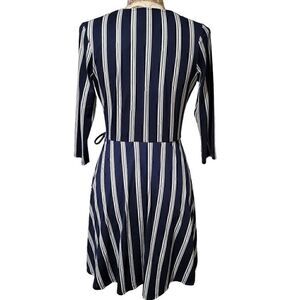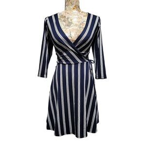 iZ Byer Blue Striped Soft Stretchy Faux Wrap Dress sz M in EXCELLENT condition! Soft and comfy. See photos for details and approximate measurements.