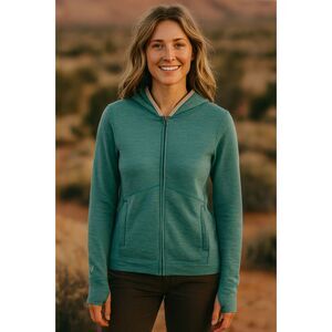ibex Blue Merino Wool Full Zip Hoodie Top Women's Size Small