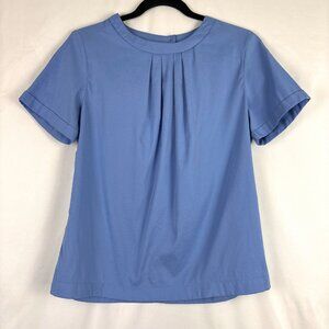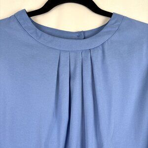 ico Blue Pleated Front Short Sleeve Blouse Women’s Medium