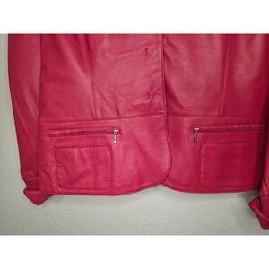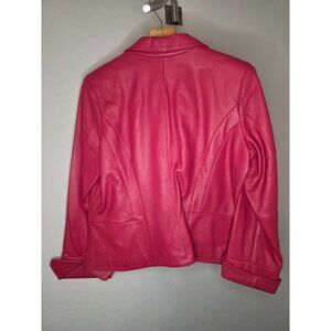 i.e. Pink Buttery Leather Jacket With Zipper Pockets & Notched Lapel Large to XL